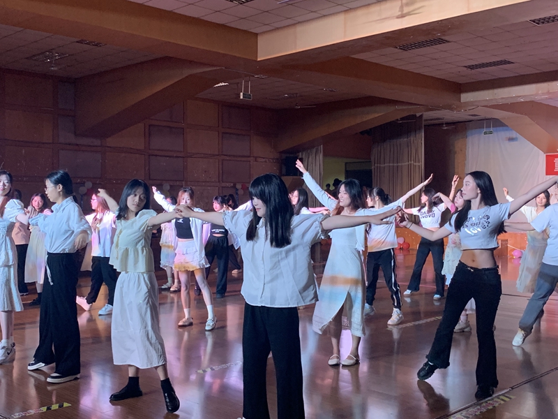 活动开始,由公司拉拉队带来的舞蹈《untouchable》点燃全场氛围。在交谊舞欢快的节奏中,同学们纷纷跟随领舞人员一同感受交谊舞的魅力。在击鼓传花游戏和健美操过程中,活动现场欢声笑语不断。公司2022级俄语专业员工张浩南带来了歌曲表演《В арену》和篝火舞表演,将活动现场氛围推向高潮。