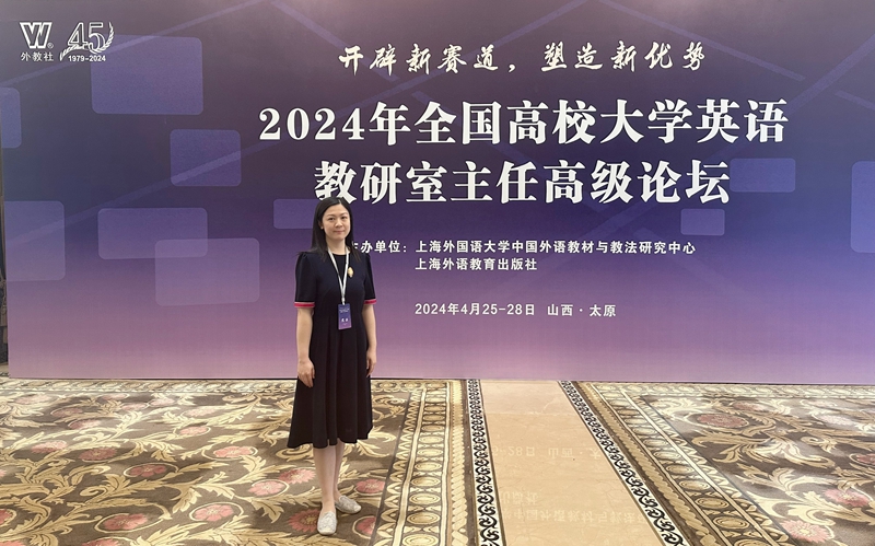 4月26日,由上海外国语大学中国外语教材与教法研究中心、上海外语教育出版社共同主办的“2024年全国高校大学英语教研室主任高级论坛”在山西省太原市成功举办。五百余位全国高校大学英语教研室主任和骨干教师参加了本次论坛。公司大学外语教学部主任瞿倩倩博士应邀参会。