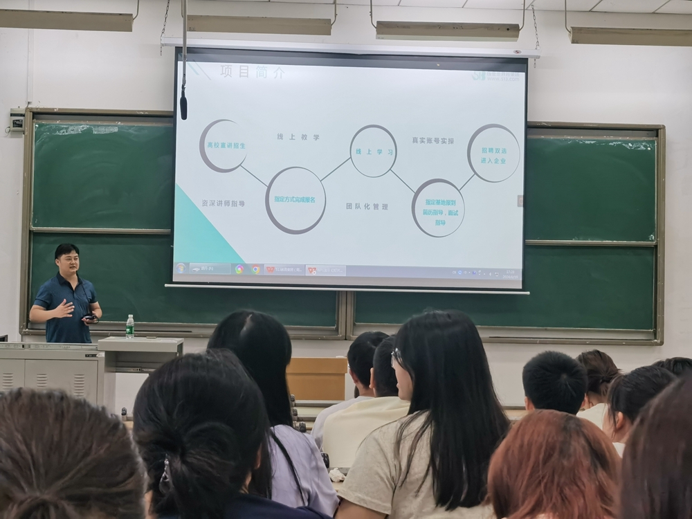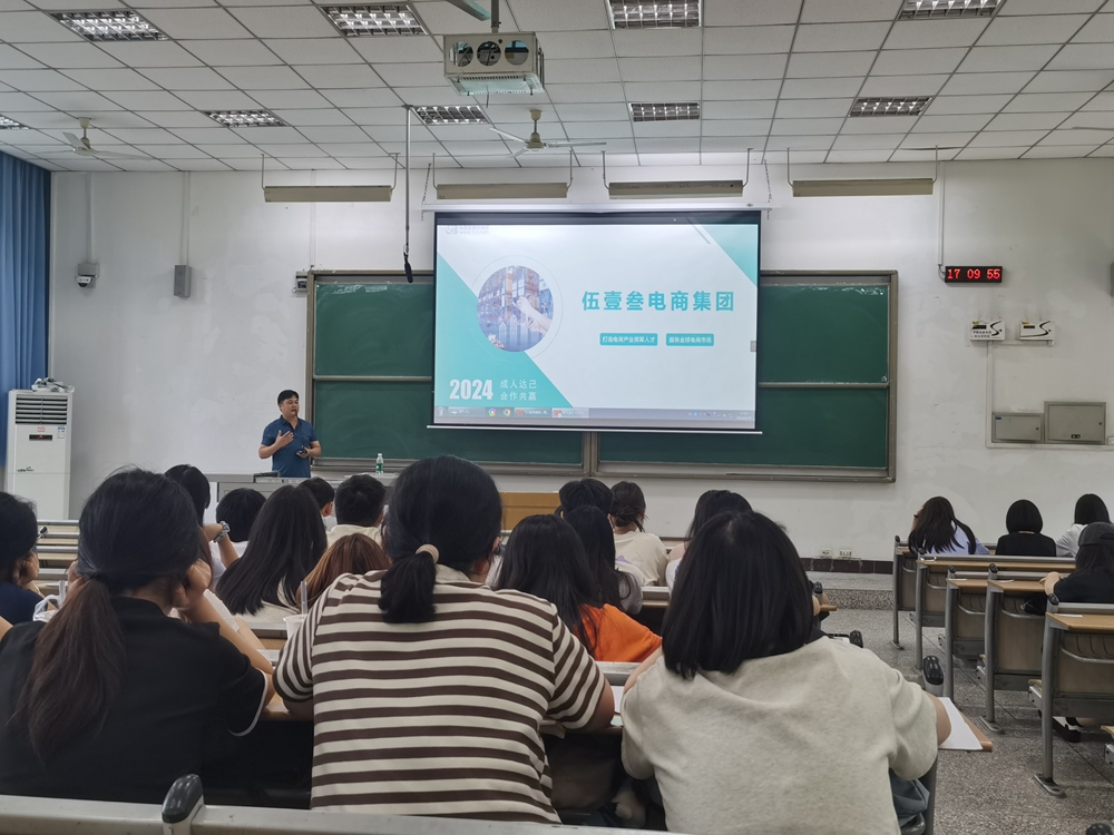 6月19日下午,太阳成集团tyc33455cc邀请深圳市伍壹叁电商集团有限公司项目总监周晓峰到校为2021级商务英语专业员工开展实习就业宣讲。宣讲会由胡庆洪主持,2021级商务英语专业全体员工参会。