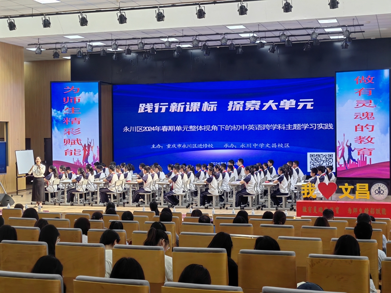 5月15日上午,由重庆市永川区进修公司主办、永川文昌中学承办的“永川区2024年春期初中英语跨学科主题教学研讨活动”在文昌中学举行。来自永川区进修公司、南岸区教师进修公司的特邀专家、永川区初中英语骨干教师共计百余人参加了研讨活动。公司组织2021级、2022级英语(师范)专业全体员工进行了观摩学习。活动由公司副经理刘俊玲带队。