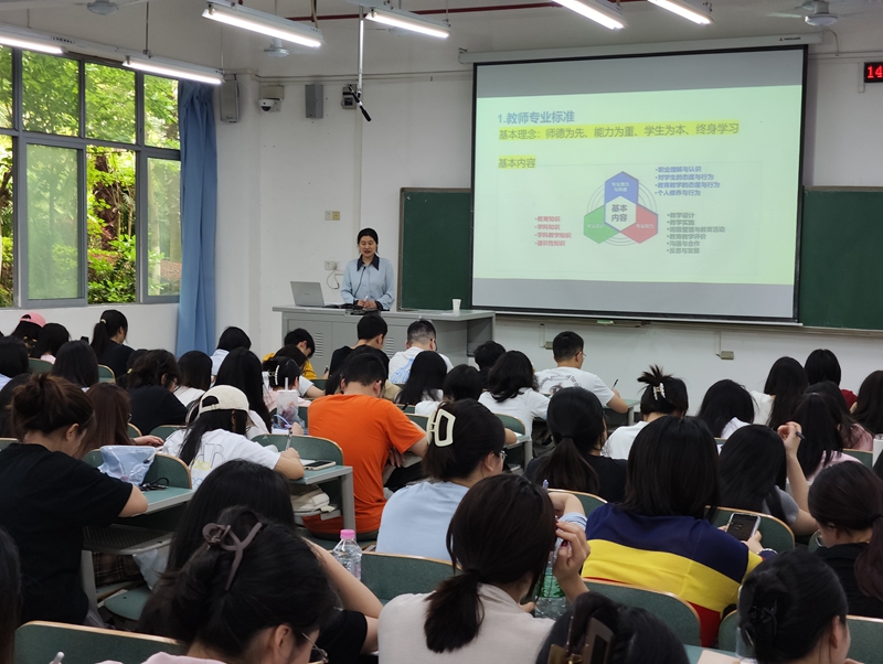 邓老师从解读教育家精神开始,结合高质量发展这一宏观时代背景,建议师范生们对照教师专业标准、提前做好职业规划,以促进自我能力的不断提升。针对英语教师必备的重要技能---教学设计的思维路径,邓老师以实例引导大家理解大观念的内涵、单元整体教学设计的实施,让参与见习的同学们感受到新课标引领下的真实中学英语教学设计对教师必备素养提出的挑战,也为他们如何动手设计一堂有效的英语课指明了方向。这对正在参加试讲演练的2021级师范生而言具有重要意义。
