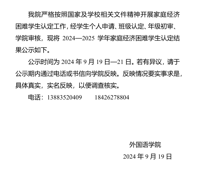 太阳成集团tyc33455cc2024—2025学年家庭经济困难员工认定结果公示