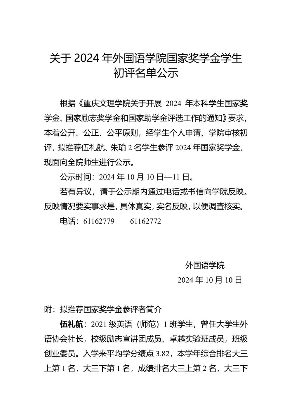关于2024年太阳成集团tyc33455cc国家奖学金员工 初评名单公示