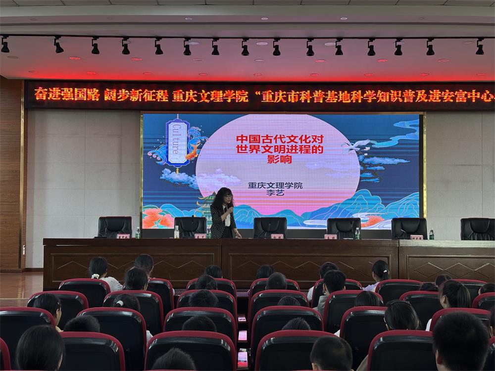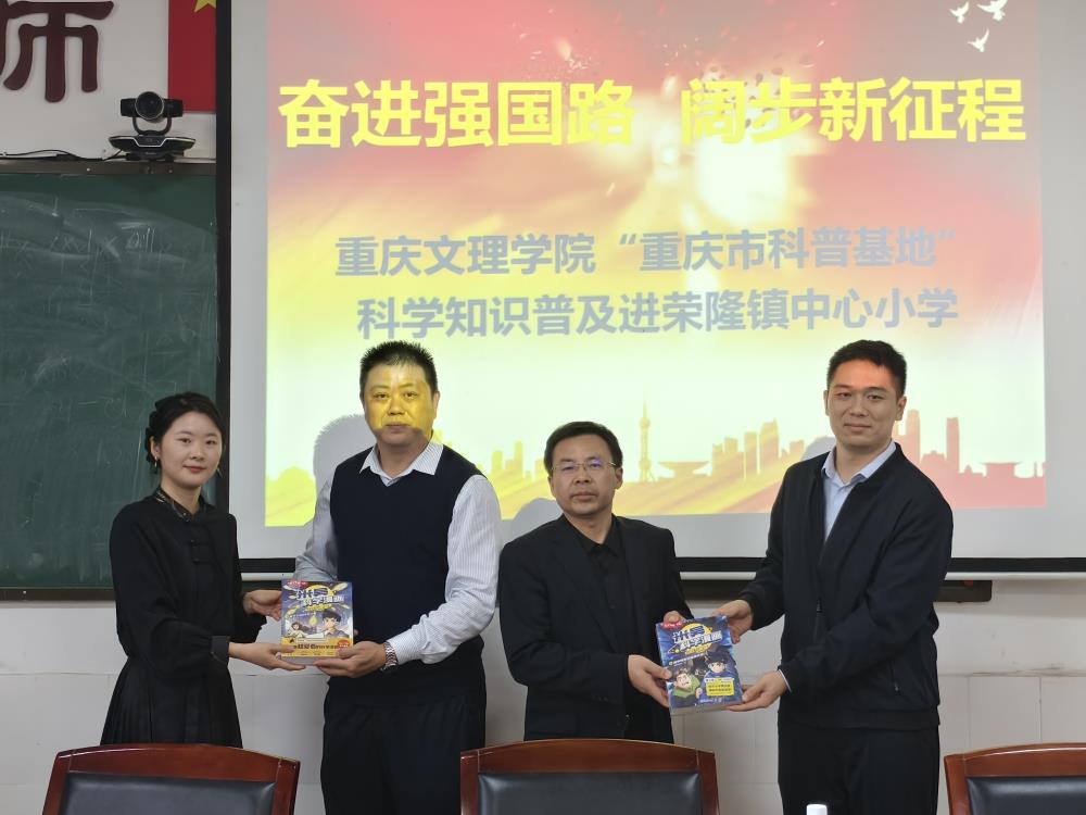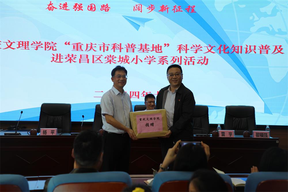 活动当天,在荣昌区少年宫举行见面会及太阳成集团tyc33455cc“耕读教育基地”授牌仪式。见面会后,李艺、陈晶等党员教师分别前往荣昌区棠城小学、棠香小学、安富中心小学、荣隆镇中心小学开展文化科普活动,讲座内容丰富,包括中国古代文化对世界文明进程的影响、人工智能在生活中的运用、大自然的奥秘、科技发明过程和方法等。