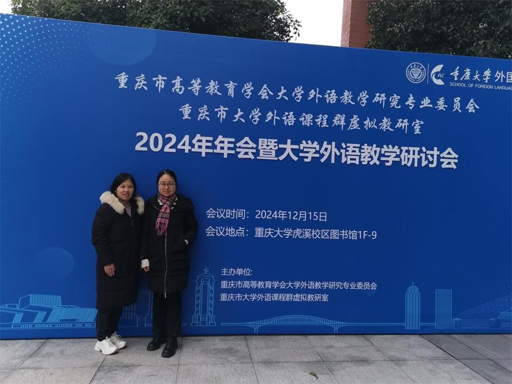 2024年12月15日,重庆市高等教育学会大学外语教学研究专业委员会2024年会暨重庆市大学外语课程群虚拟教研室教学研讨会在重庆大学召开,公司教师丁芳、刘淑受邀参会。