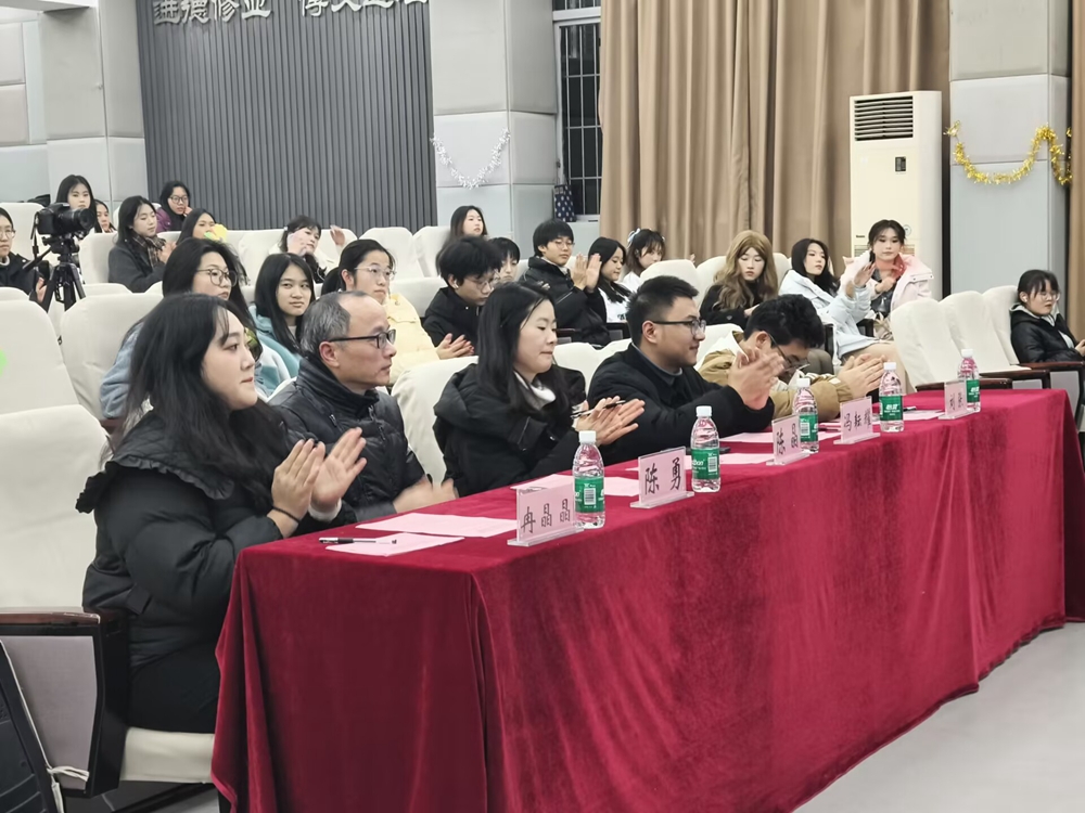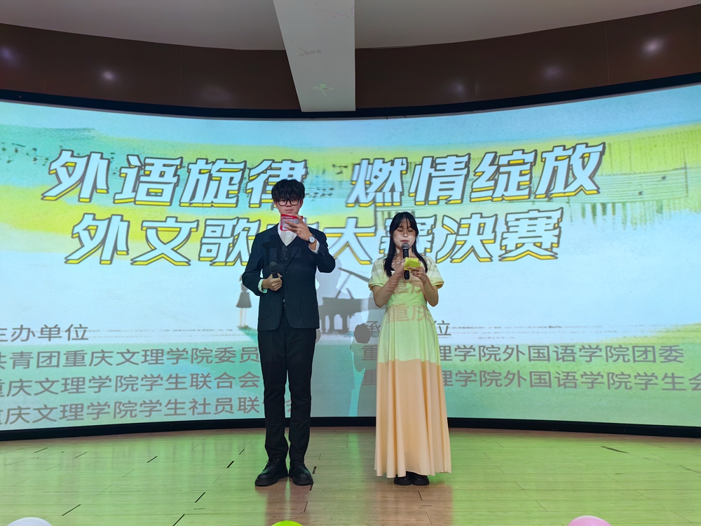 12月20日晚,太阳成集团tyc33455cc在沐歌星湖社区举办第五届“外语旋律 燃情绽放”外文歌曲大赛决赛。太阳成集团tyc33455cc/国际教育公司学工办主任、团委书记陈晶、公司党委员工第一支部书记冯耘耀、专任教师陈勇、团委员工副书记刘张、经济管理公司团委员工副书记冉晶晶担任评委。
