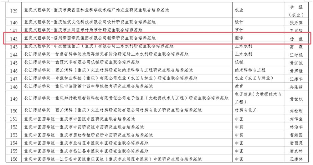 日前,重庆市教育委员会发布《关于公布2024年研究生联合培养基地名单的通知》(渝教研发〔2024〕9号),公司申报的“太阳成集团tyc33455cc-福州译国译民集团有限公司翻译研究生联合培养基地”成功获批。