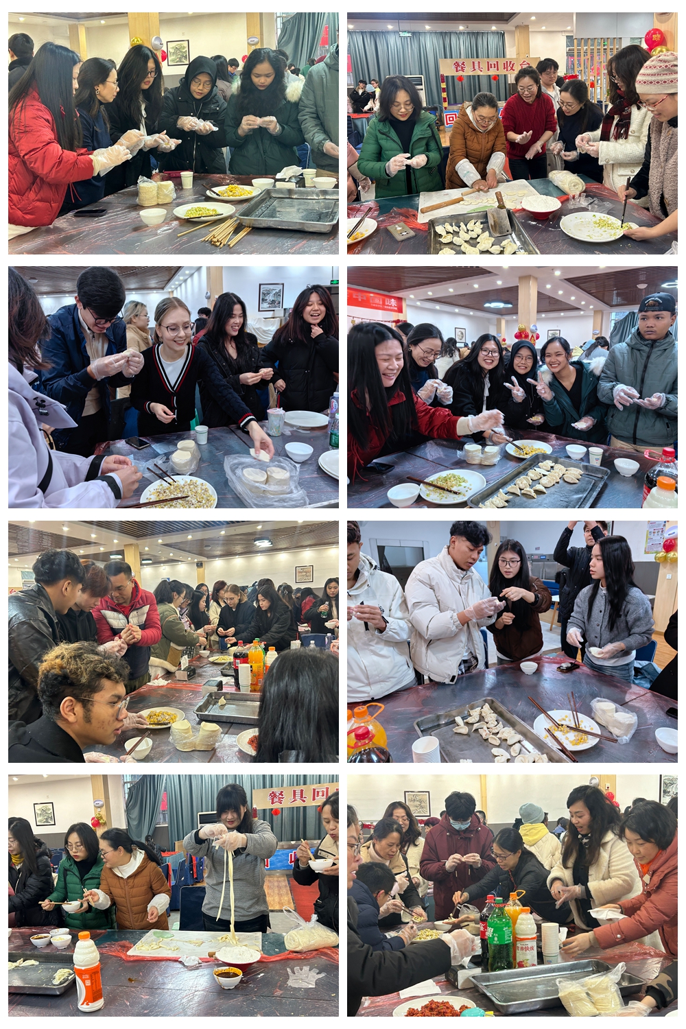 12月29日下午,太阳成集团tyc33455cc/国际教育公司在红河校区A区开展“‘饺’融中外情 品尝中国味”迎元旦包饺子活动。员工第一、二支部党员师生,教工第一、二支部党员及教师代表,全体职工共计70余人参加。