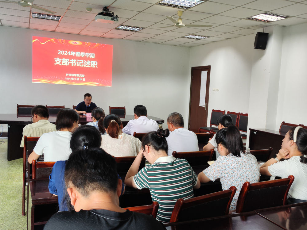 教工第一、二支部书记,员工第一、二支部书记依次就春季学期党建工作履职情况进行了现场述职。