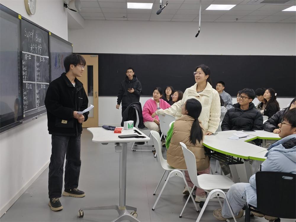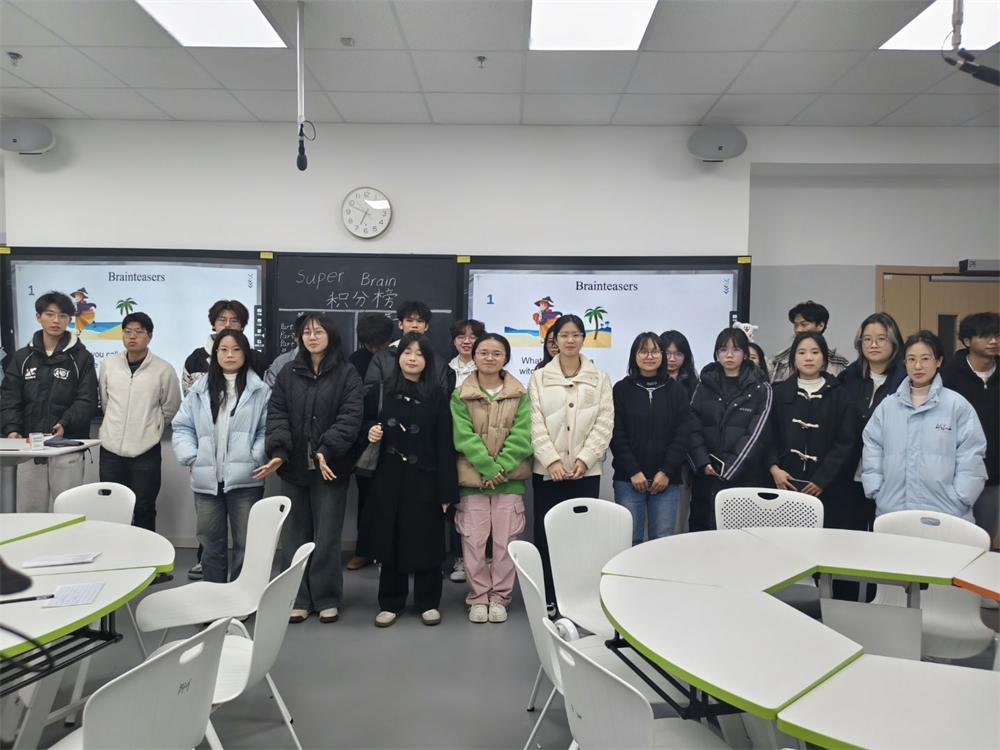活动围绕 “Super brain” 这一充满趣味与挑战的主题展开,主持人巧妙运用神秘刺激的谜题以及令人脑洞大开的故事,迅速点燃了大家的参与热情,一场别开生面的语言狂欢就此拉开帷幕。为增添竞争性与趣味性,活动采用小组积分制,各小组同学积极投入,全力角逐最后的 “超级大脑” 殊荣。活动中,同学们充分发挥丰富想象力,踊跃用英语交流观点,不仅锻炼了逻辑推理能力,英语水平也在欢乐的氛围中得到锻炼。活动还精心穿插了 “脑筋急转弯”“海龟汤” 等趣味环节,考验同学们对英语词汇的灵活运用能力。