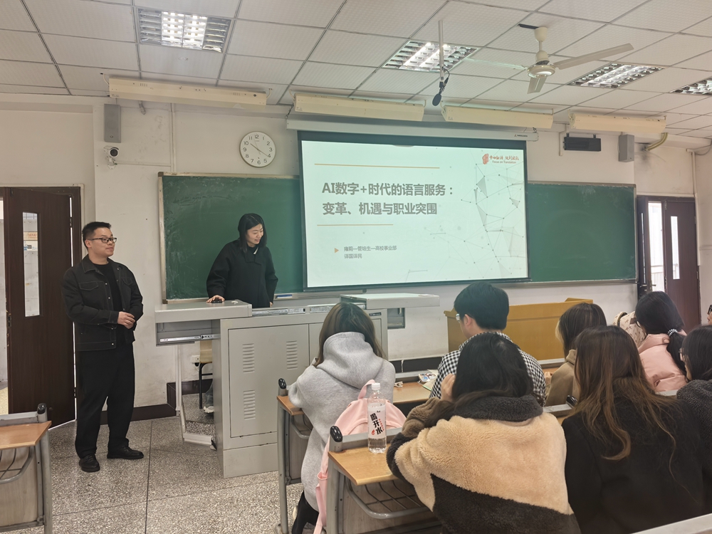 3月21日上午,福州译国译民集团有限公司西部公司总经理吴强一行应邀来院开展职业规划培训,公司2022级员工参加。