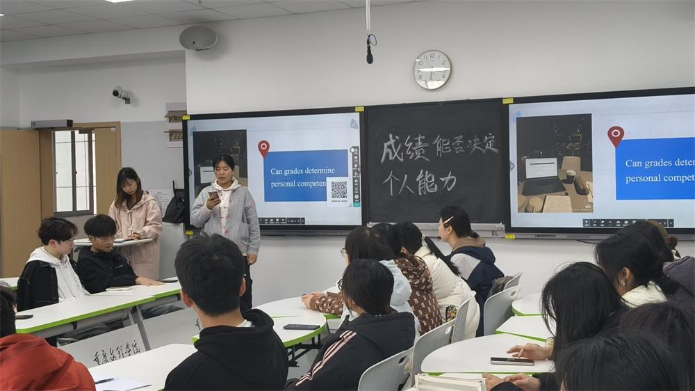 本次活动采用辩论形式,围绕“成绩是否可以决定个人成就”主题,用英语为载体进行辩论。参与员工各抒己见,观点纷呈。辩论结束后,杨金梅对选手的积极参与和精彩表现给予了肯定,并对同学们在英语语音语调的准确性、语言的连贯性和流畅性等方面的改进进行了指导。