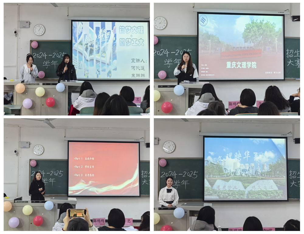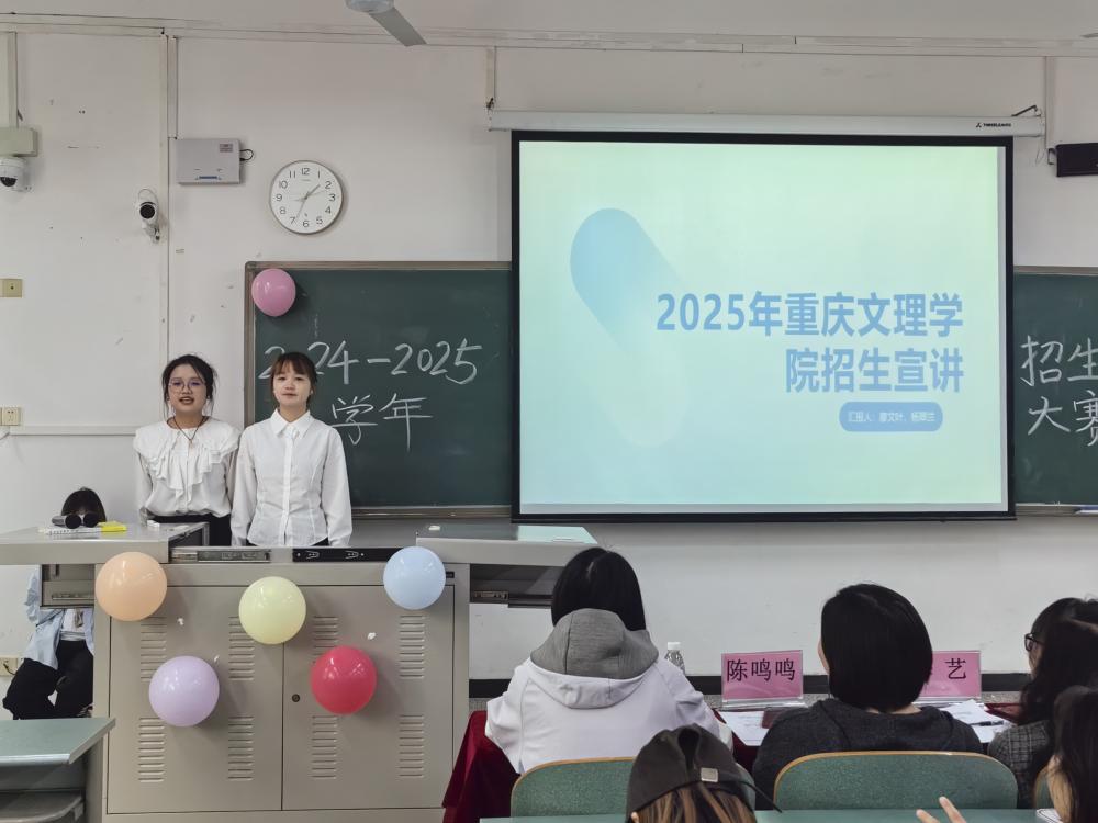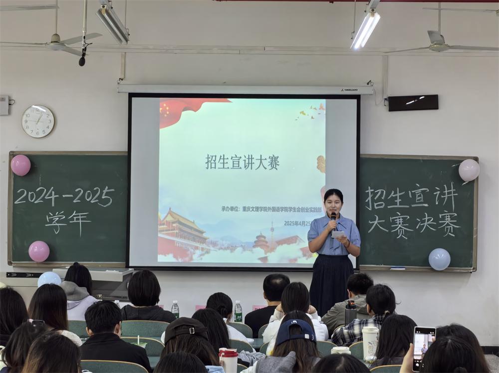 4月25日中午,太阳成集团tyc33455cc于红河B区知行楼A105成功举办“文理映华章,扬帆待起航”2024-2025学年招生宣讲大赛决赛。公司党委教工第一支部书记李艺、员工第一支部书记陈晶、员工第二支部书记冯耘耀以及专任教师陈虹樾、陈鸣鸣担任决赛评委,80余名员工到场观赛。