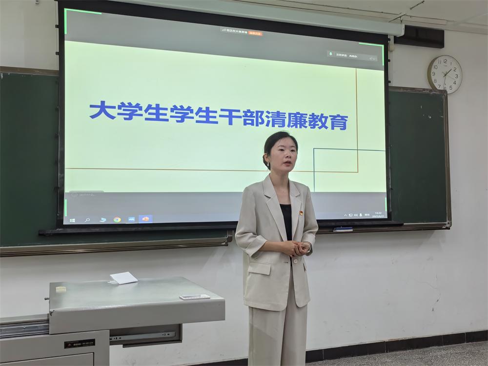 会上,陈晶首先为全体团学干部作清廉教育主题讲座,她强调,清廉是青年学子修身立德的根本,更是青春成长不可或缺的精神底色,希望全体团学干部将廉洁意识全方位、深层次地融入到学习和生活各个方面,以清廉为准则规范自身言行,为个人的全面发展筑牢坚实根基。