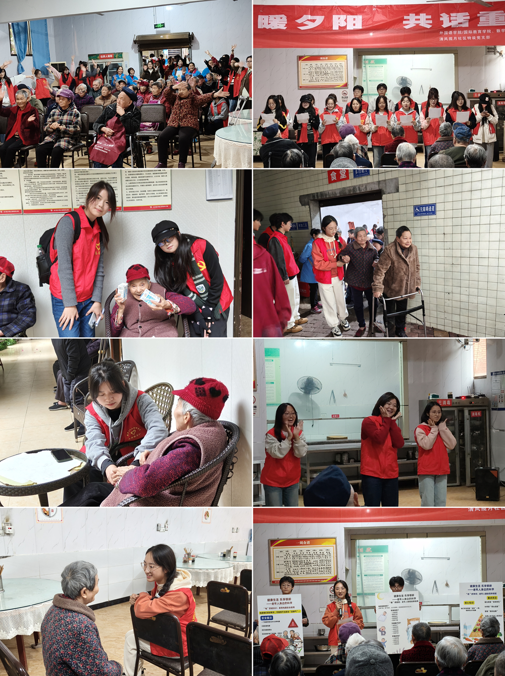 活动当天,志愿者们携带精心准备的礼品探望公寓老人,围坐老人身旁倾听他们讲述往昔故事与生活趣事,院内洋溢着温馨与欢笑声。随后,志愿者们献上精彩纷呈的节目,包括舞蹈《第一天》、歌曲《外婆的澎湖湾》、朗诵《青春中国》等,老人们热情参与互动,现场气氛热烈高涨。在《健康生活,乐享银龄》科普环节中,志愿者们以通俗易懂的语言讲解合理膳食、健康睡眠等知识,助力老人乐享幸福晚年。