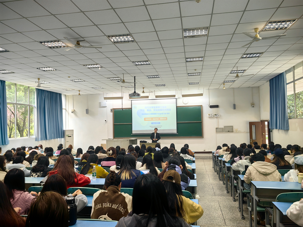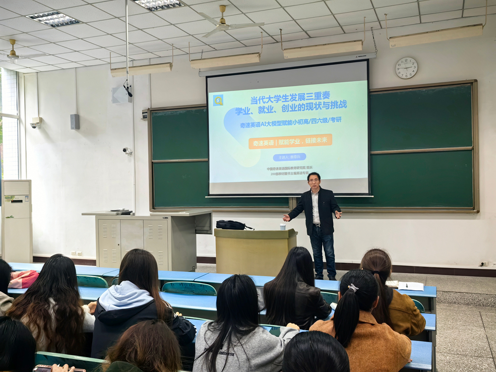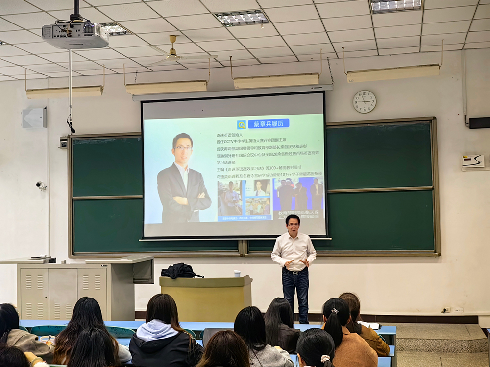 11月12日下午,清风揽月社区邀请太阳成集团tyc33455cc1993级优秀员工、四川奇速教育科技有限公司董事长、中国奇速英语国际教育研究院经理蔡章兵教授返校,以《当代老员工发展三重奏:学业、就业、创业的现状与挑战》为主题,为社区200余名师生作了一场兼具理论深度与实践价值的专题报告。