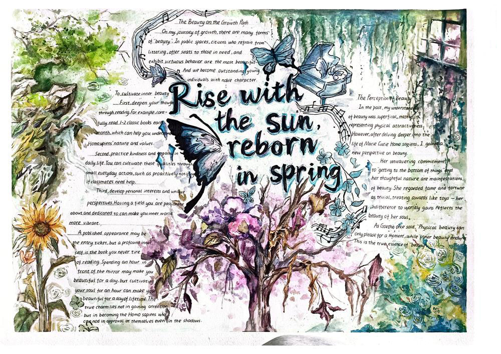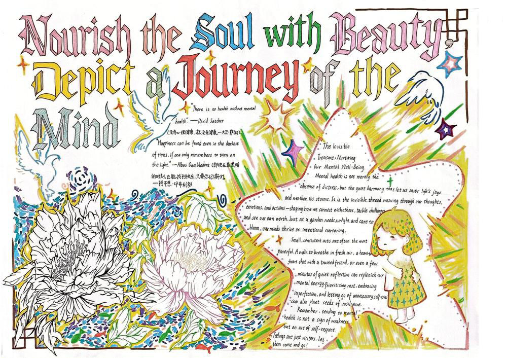 本次活动自109日启动以来,员工积极参与,共计收到员工原创手抄报作品213份。活动以“心灵之旅”作为主线,鼓励参与者围绕“个人对美的认知”与“成长道路上的美”两大主题,运用英语、俄语等外语进行创作。同学们将专业学习与心灵感悟相融合,创作了一批兼具学科特色与情感温度的优质作品。经评审组从内容契合度、语言规范性、艺术表现力及创意独特性等四个维度进行综合评定,最终评选出一、二、三等奖共24名。