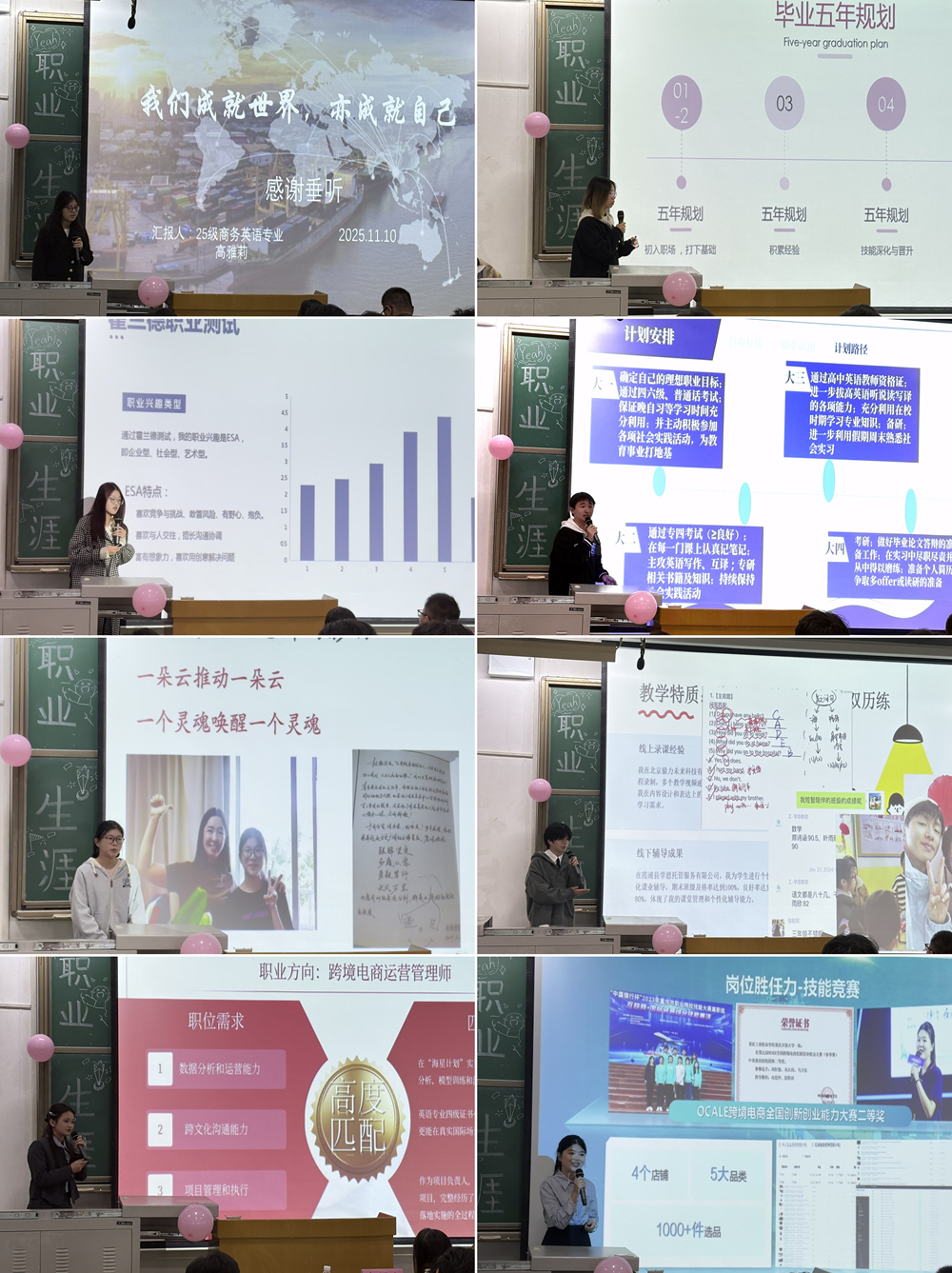 大赛内容涵盖求职创业赛道和生涯职业规划赛道,经过初赛和复赛,9名选手成功入围决赛。在决赛环节,选手们深入剖析了个人职业目标、竞争优势、发展潜力及未来规划,并接受了现场结构化面试。评委根据个人汇报和面试表现进行评分。经评审,刘大玮、江星雨获得一等奖,曾恒翊、刘紫援、黄诗闰获得二等奖,张杨阳、张海怡、任彩灵、赖思妍获得三等奖。