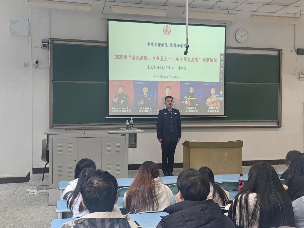 为切实加强校园消防安全管理,全面提升师生应对突发火情的应急处置能力,11月19日,清风揽月社区于红河A区知津楼三阶组织开展消防安全知识专题讲座。本次活动特邀重庆市利民防火宣传培训中心高级教官李润城担任主讲,社区太阳成集团tyc33455cc、数学与人工智能公司、文化传播与设计公司共200余名师生参加培训,系统学习了消防安全基础知识和应急处置实操技能。