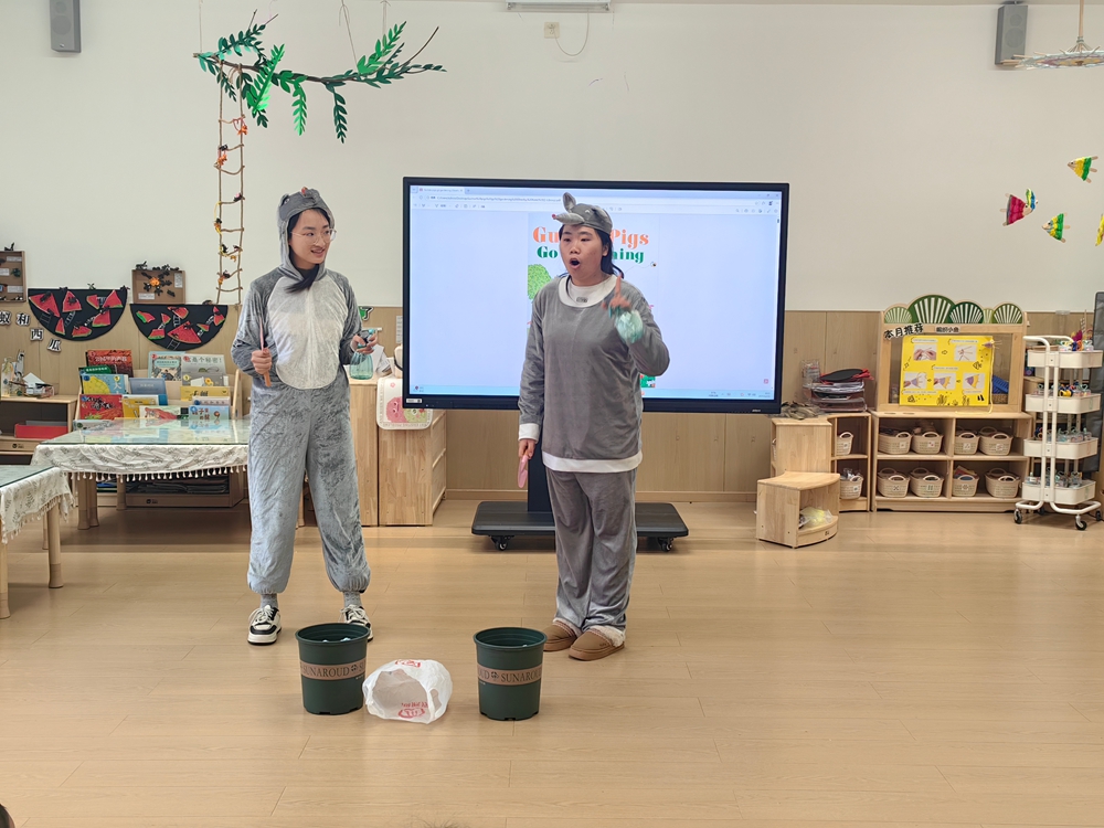 本次活动以英文绘本《Guinea Pigs Go Gardening》为核心内容,采取“绘本讲解与情景表演相结合”的形式,为小朋友们呈现了一堂富有教育意义和趣味性的英语体验课程。活动中,主讲人通过丰富的图画资源和充满童趣的语言表达,引导小朋友们深入理解小豚鼠BobGinger的花园种植故事,并巧妙融入介词“in”的用法教学,提升了语言学习的实效性。课堂中还设置了“连一连”“图文匹配”等互动环节,积极鼓励孩子们大胆开口说英语,增强了参与度和学习效果。