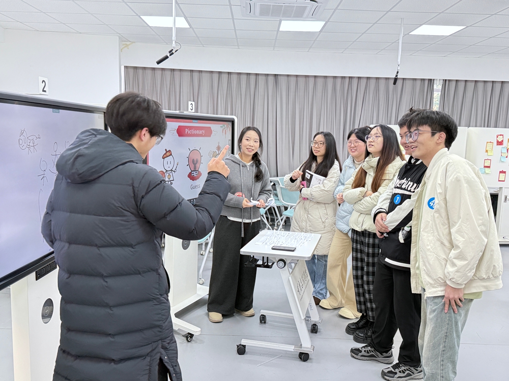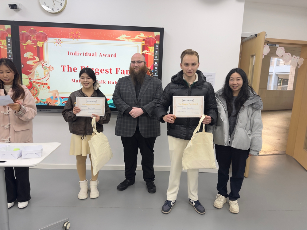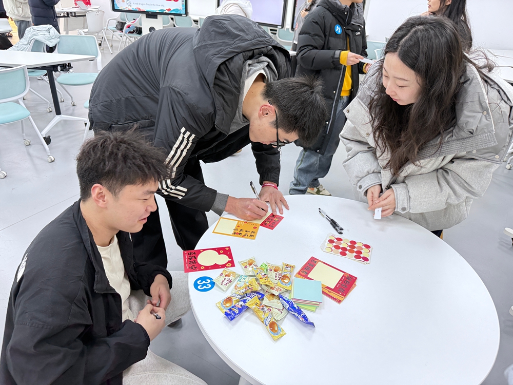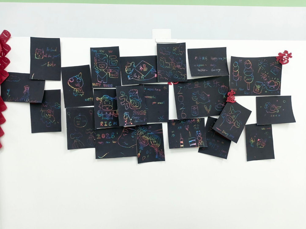 活动围绕“Riddles & Revelry”主题,于三个教室分区域开展迎新春英语交流活动。通过谜语解析、英语推理、你画我猜、故事接龙、找不同等主线任务,并配套多种互动小游戏及知识问答环节,为全校英语爱好者提供了全新模式的口语实践平台。活动中同学们可通过与NPC互动获取额外积分,现场还专门布置了心愿墙和主题画展区域,大家以文字和绘画的形式表达对2026年的美好展望。活动中同时对本学期英语主题系列活动进行了回顾,并组织了最受欢迎活动海报投票及抽奖环节。