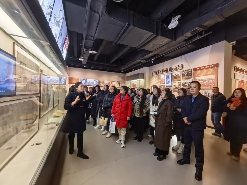 在纪念馆内,大家跟随讲解员认真参观历史陈列、文献资料、实物展品与场景复原,重温以周恩来同志为代表的老一辈无产阶级革命家在特殊历史条件下坚守信仰、对党忠诚、坚韧不拔、无私奉献的光辉岁月,深刻感悟红岩精神的历史底蕴与时代价值,深切缅怀革命先烈为国家独立、民族解放、人民幸福而浴血奋战、无私奉献的崇高品格。一段段珍贵历史、一个个感人故事、一幕幕奋斗场景,让全体教职工接受了一次深刻的思想淬炼、精神洗礼和党性教育。